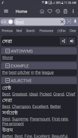 Словарь Bangla знакомит с языком просто и живо, он предлагает главный игровой цикл поиска слова и проверки значения в паре с краткими примерами, так что вы быстро видите результат своих усилий. Интерфейс не мешает читать и запоминать, поиск возвращает не только перевод но и варианты употребления, а небольшие тесты в конце сессии сохраняют внимание и вызывают желание заглянуть ещё раз. Встроенный список избранного помогает быстро найти нужные слова, а функция подсказок иногда раскрывает неожиданные ассоциации, оставляя легкую интригу о следующих открытиях в словаре английскими значениями.