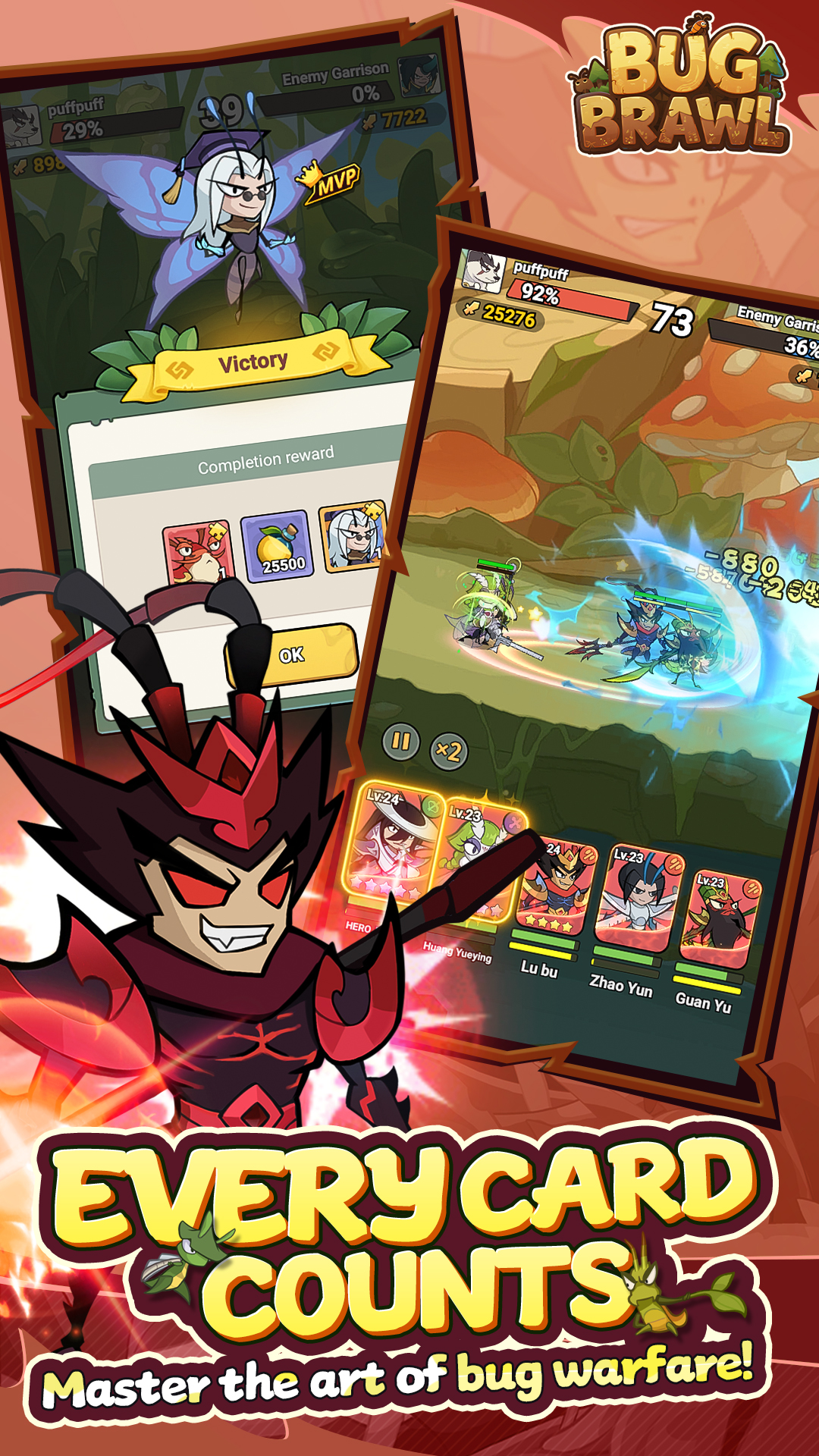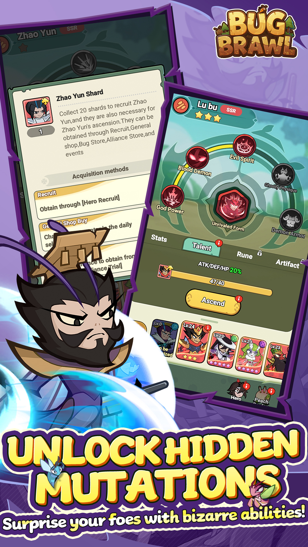 Bug Brawl это масштабная RPG в крошечном мире насекомых эпохи Троецарствия, где ты собираешь отряд генералов‑насекомых и ведёшь их через пугающе живые поля боя. Игра строится на простом цикле: собирай героев, улучшай навыки, сражайся в коротких матчах и собирай ресурсы для постоянного роста. В процесс вплетены неожиданные сюжетные нотки и скрытые механики которые раскрываются только после нескольких часов игры, так что захотелось остаться и разглядеть все тайны мира насекомых.