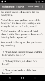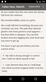 Fallen Hero: Rebirth это текстовый роман с глубокими ветвлениями и почти бесконечными мотивами для исследования, где каждое решение сдвигает баланс и заставляет по-новому взглянуть на героев. Вы читаете, выбираете и наблюдаете за последствиями, вникнув в основную петлю действий, когда развязки возникают из повседневных выборов и неожиданных встреч. Система реагирует на стиль ваших решений и подстраивает мир вокруг, а небольшая тайна в начале истории держит интерес и обещает, что ничто не останется прежним в следующих главах.