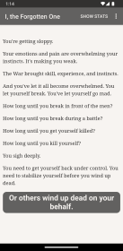 I, the Forgotten One вы окунетесь в тёмный и подробный мир интерактивного романа где каждое решение ведёт к новым последствиям. Ваша роль королевского изгнанника заставит выбирать между честью и выживанием, между правдой и удобной ложью. Главный игровой цикл простой и цепляет: чтение обстоятельных отрывков, выбор пути, и наблюдение за тем как меняется судьба персонажей и самого королевства. Непрерывное нарастание напряжения и скрытые тайны держат интерес, а ощущение личной ответственности за исход истории добавляет остроты и заставляет возвращаться снова и снова.