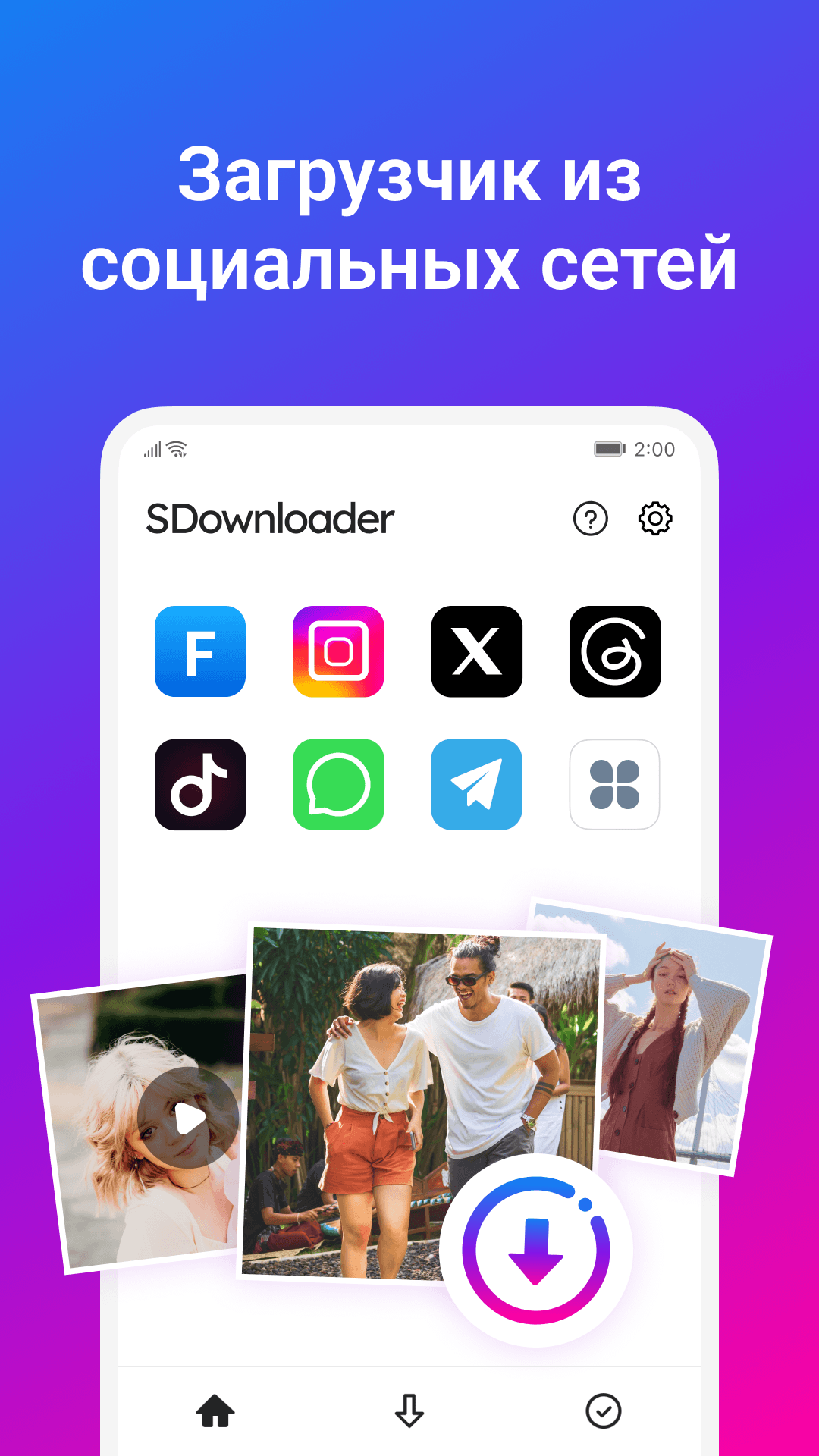 SDownloader это простое приложение для сохранения видео и изображений когда нужно быстро забрать ролик из ленты и оставить его у себя. Открываешь нужный сайт во встроенном браузере скрипт определяет клип на странице и предлагает скачать. Выбираешь качество и формат отмечаешь папку и подтверждаешь. Поддерживаются популярные соцсети распознаются ссылки в буфере и подсвечиваются несколько роликов если они есть на странице. Можно сохранить обложку фото из статьи или длинный рил с музыкой и потом смотреть офлайн без сети и лишних манипуляций.