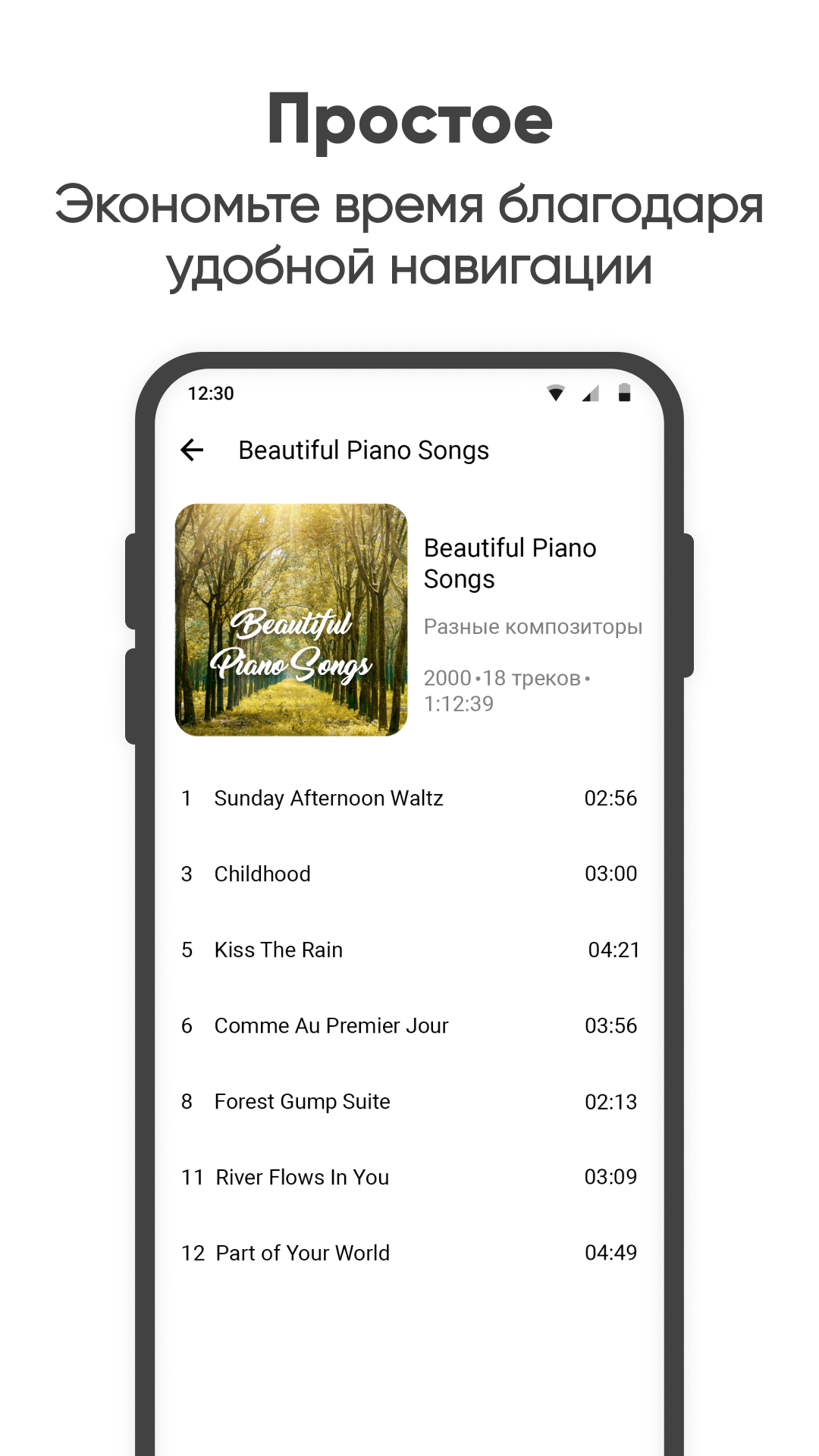 Простой музыкальный плеер — плеер, который сосредоточен только на твоей музыке и ничего лишнего. Открываешь приложение, видишь свою коллекцию, выбираешь альбом или плейлист и сразу погружаешься в треки без баннеров и всплывающих подсказок. В каждом прослушивании ты переключаешь композиции, регулируешь эквалайзер и собираешь плейлисты для настроения. Простота интерфейса делает главный цикл понятным и быстрым, а минимализм оставляет место только звуку и комфортному управлению, создавая неожиданное ощущение концентрации на музыке.