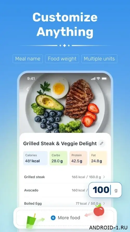 Приложение предлагает распознавание сложных блюд подробный список ингредиентов и удобный трекер воды и активности, прогресс виден на наглядных графиках. Простейшая логика прогрессии позволяет постепенно корректировать порции и привычки ощущая реальный результат в весе и самочувствии. Информация подаётся живым языком без лишних деталей интерфейс интуитивен и не тормозит процесс, в итоге контроль за питанием становится естественной частью дня и приносит ощутимый результат.