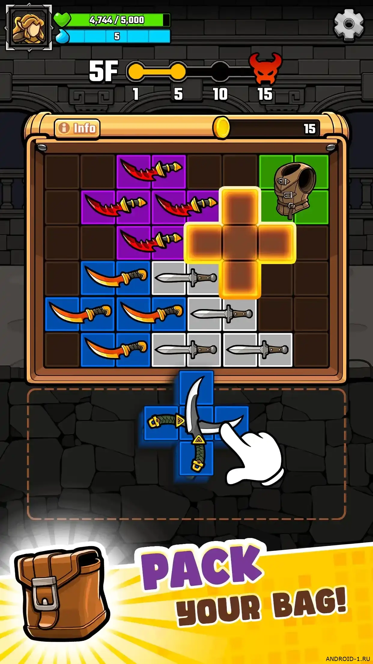 Pack & Clash: Backpack Battle это быстрая и умная roguelike-головоломка где рюкзак становится ареной, ты вращаешь и совмещаешь предметы чтобы высвободить комбо и защитные эффекты, собираешь трофеи в ограниченном пространстве и мгновенно решаешь задачу размещения, которое переводит хаос в преимущество, проходы генерируются процедурно и каждый забег приносит новые комбинации оружия и модулей, тут важна интуиция и план на ход вперед, а неожиданные схватки с боссами добавляют напряжения и желание вернуться снова.