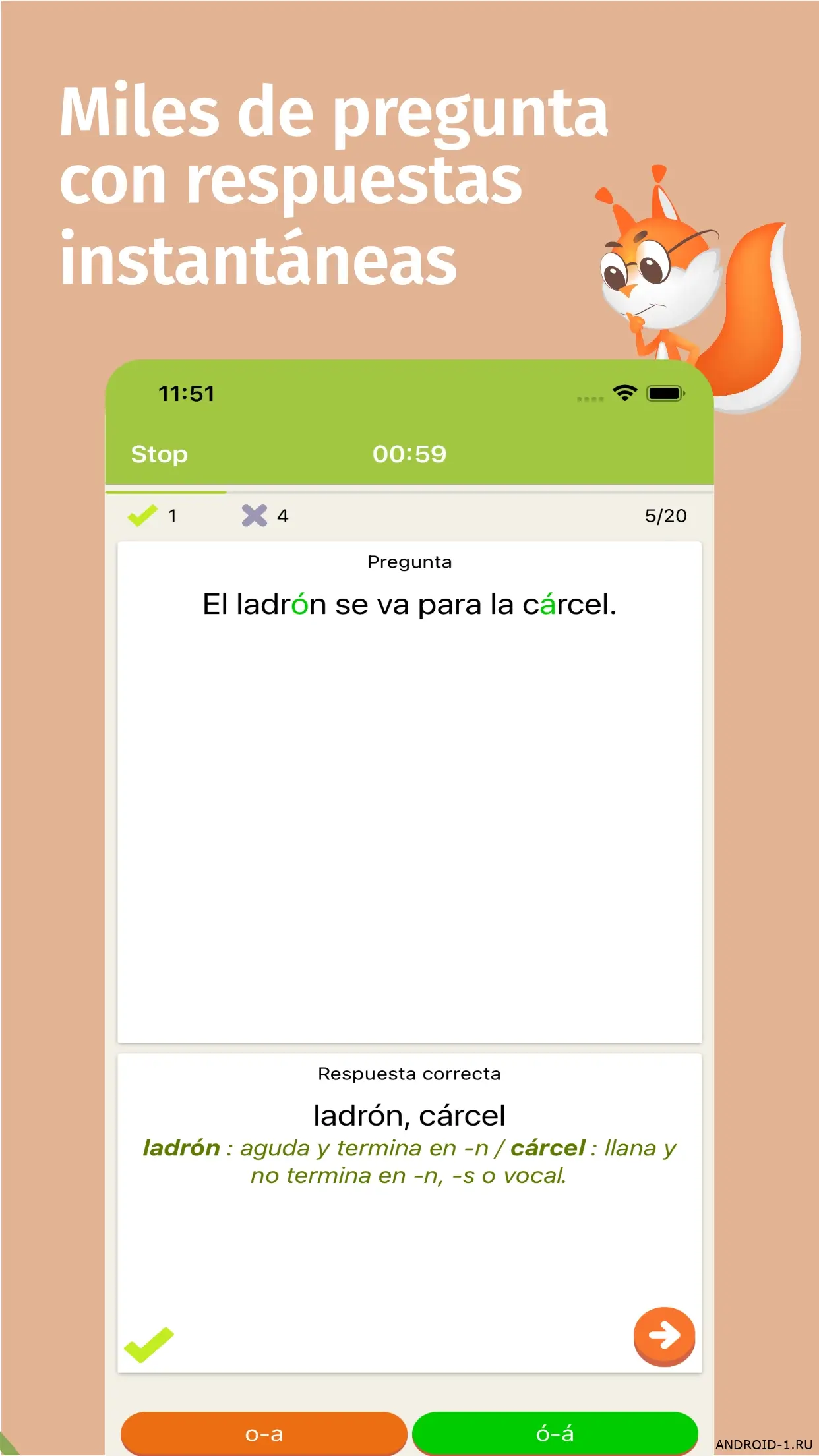Ortografía Española — простое и увлекательное приложение для тренировки испанской орфографии и письма, где вы шаг за шагом проходите короткие задания и тут же видите результат. Игровой цикл понятен с первых упражнений: читаешь задание, выбираешь или пишешь ответ, получаешь объяснение и переходишь к следующему уровню. Вплетённые мини‑события поддерживают интерес и метят неожиданные ловушки в правилах, так что каждое занятие ощущается живым и полезным.
