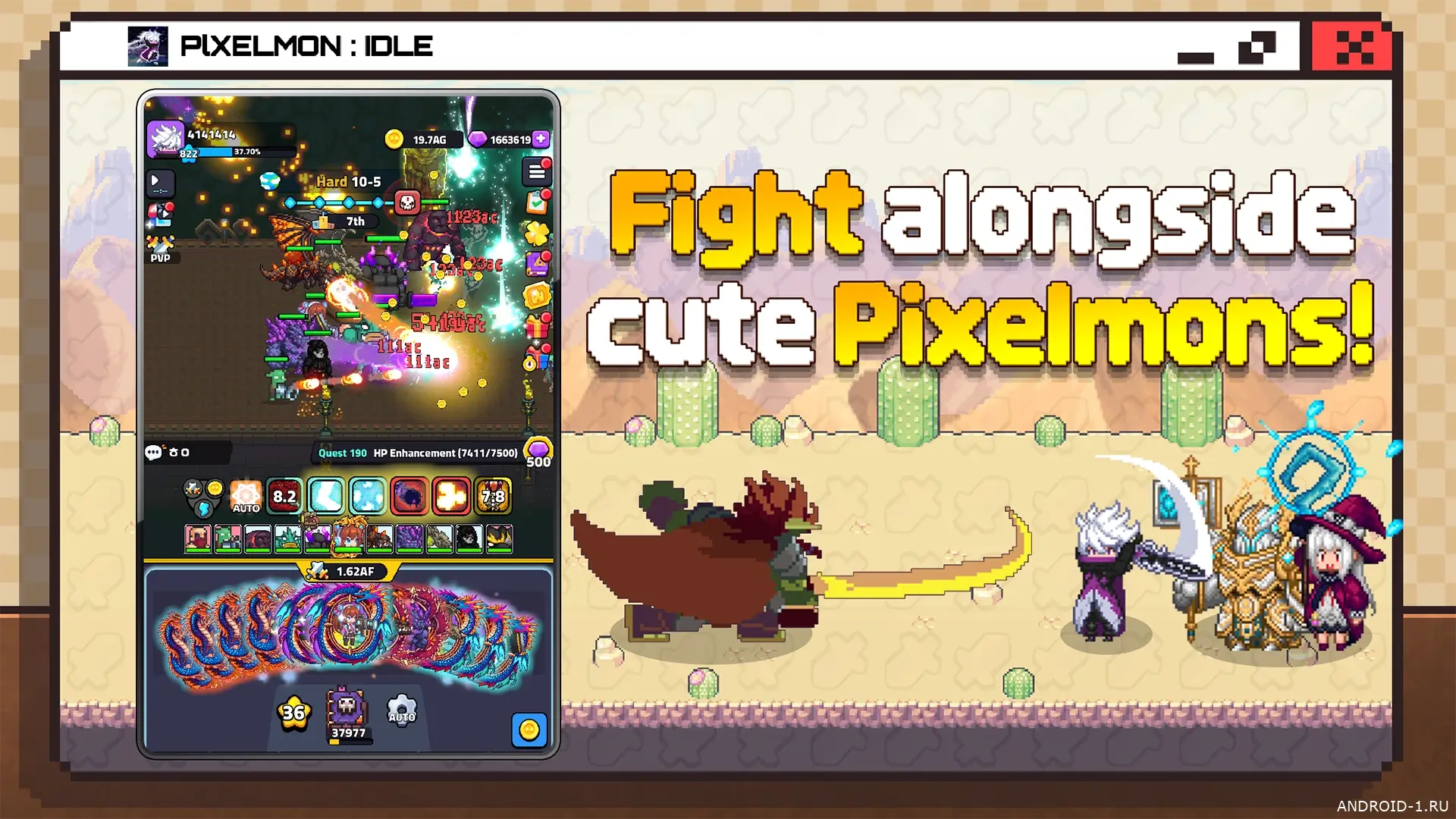 Pixelmon Idle это лёгкая и уютная idle-RPG в пиксельном мире где деревня под угрозой и ты становишься её надеждой. Ты собираешь пиксельмонов формируешь отряд и отправляешься в серийные забеги где бои идут сами, а ты решаешь тактику и получаешь награды. Каждый заход включает гача, прокачку героя и сбор ящиков с ресурсами, а ночь значит сохранённый прогресс и возможность вернуться с новыми силами; ощущается постоянный рост и лёгкая интрига в виде редкой добычи.