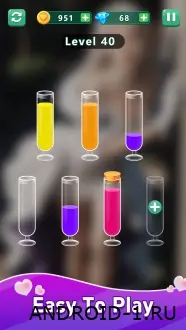 Внутри тебя ждут продуманные уровни с разнообразием задач и мягкая история о сближении персонажей, поданная через находки и визуальные метафоры. Система прогрессии награждает за точные решения новыми палитрами, декоративными пробирками и главами сюжета, так что навыки сортировки напрямую переводятся в открытия и ощущение роста. Графика делает упор на плавность и цветовые переходы, звуковой ряд создаёт атмосферу уюта, а дизайн уровней балансирует между расслаблением и вызовом, завершая каждую сессию ясным чувством удовлетворения.