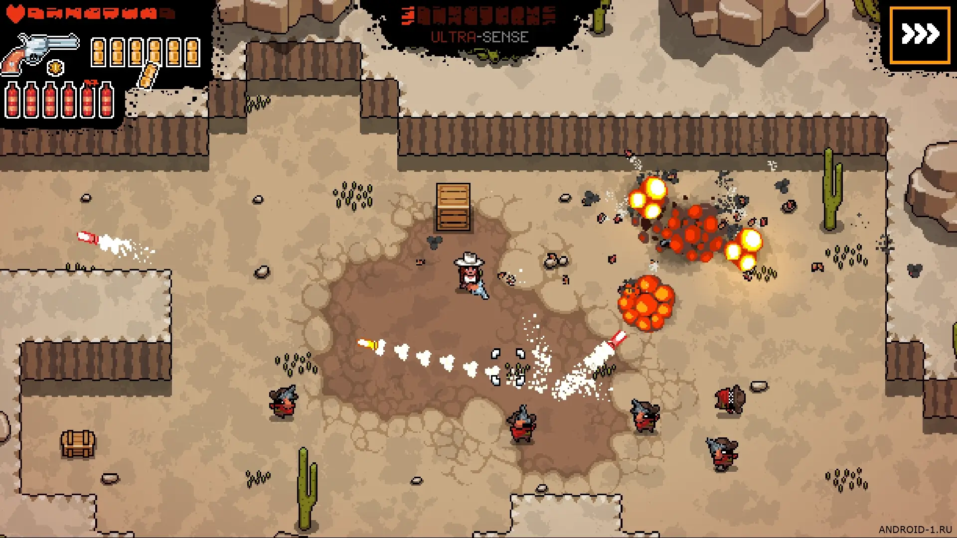 Westild's Law — динамичный шутер в антураже Дикого Запада где ты выступаешь шерифом и возвращаешь порядок в разрушенных городах и пыльных прериях. Главный цикл прост и цепляет: исследуй территорию, находи задания и вступай в перестрелки где каждое решение меняет исход сцены. Используй динамит для прорубания пути, метательное оружие чтобы нейтрализовать врагов вблизи и включай Ультрачувствие чтобы замедлять время и попадать идеальными выстрелами в вихре пуль. В игре 48 уровней с разными целями и неожиданными поворотами сюжета что держит в напряжении до финала где противостоишь главарю банды и ставишь точку в хаосе прерий.