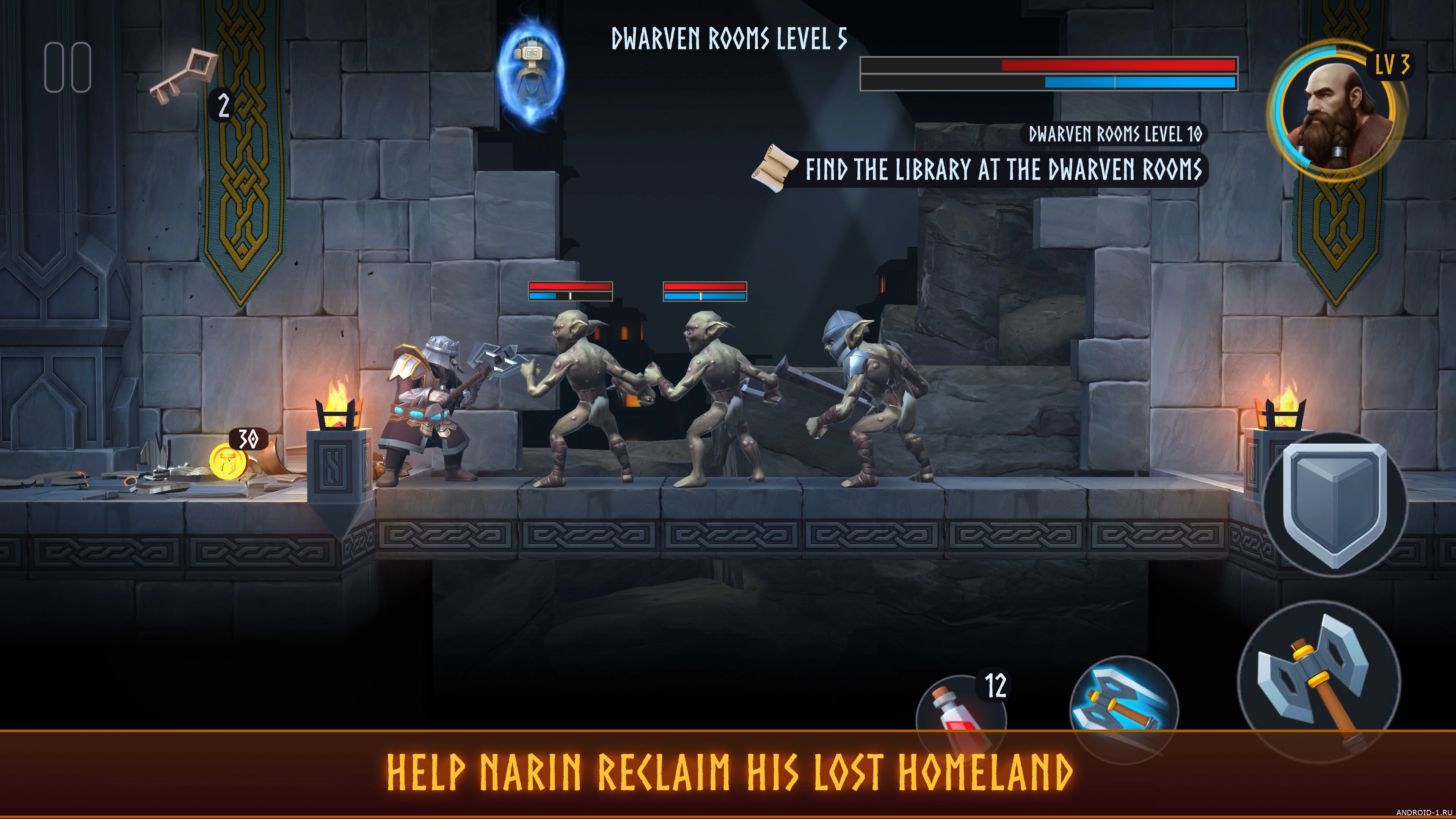 Narin – Secrets of Dwarvenia это захватывающий 2.5D экшен-приключение в мире Tiny Archers где ты ведёшь гнома-воина через пять разнообразных регионов от влажных подземелий до снежных вершин и сражаешься за возвращение родной земли. Основной цикл прост и азартен: исследуй уровни, вступай в динамичные рукопашные бои, собирай ресурсы и тут же трать их на мгновенные апгрейды. Враги не повторяются, окружение подсказывает тактику, а сюжет потихоньку раскрывает неожиданные повороты и предательство союзников.