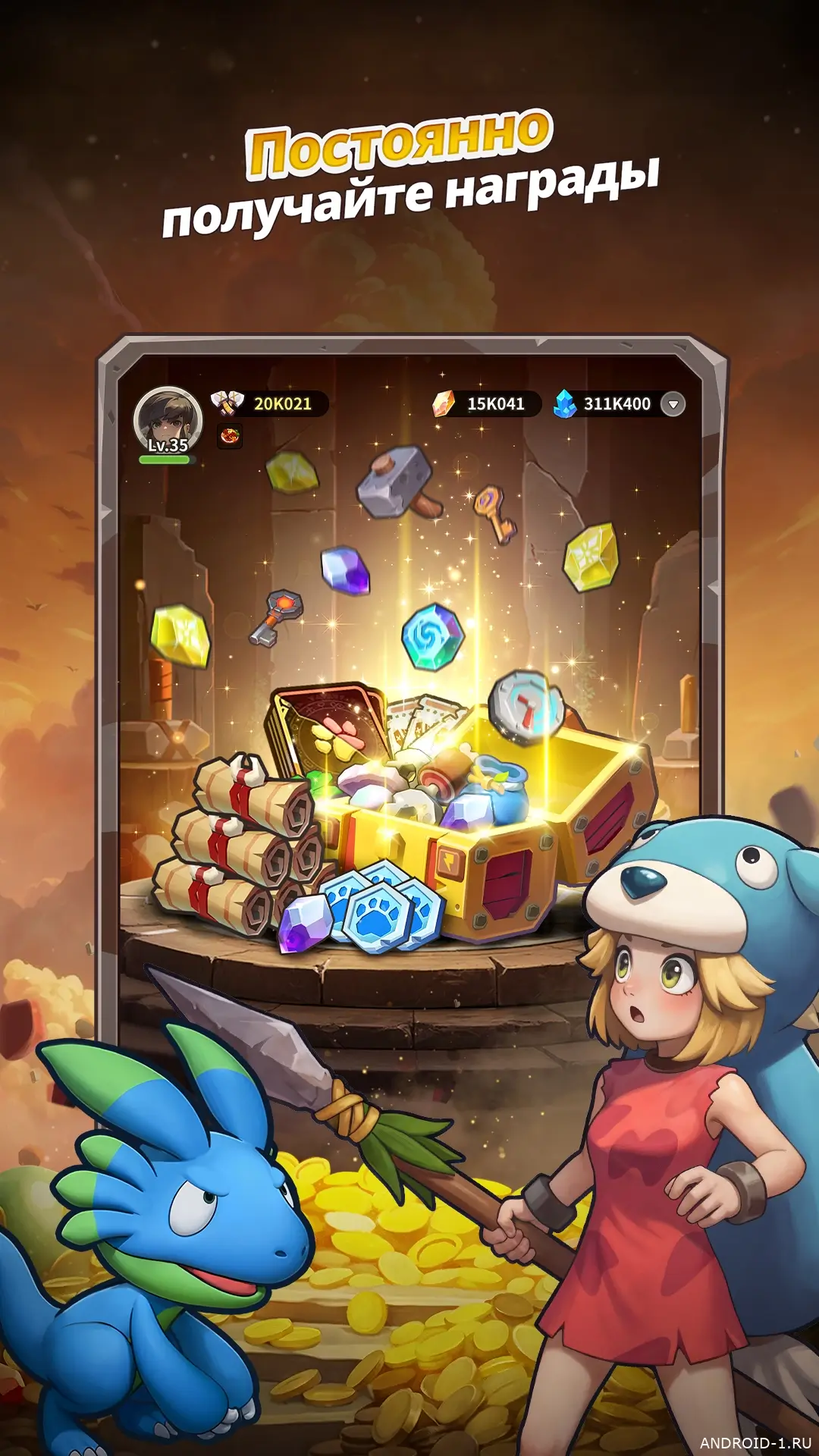 StoneAge: Idle Adventure это спокойная, но захватывающая игра про выживание и коллекционирование питомцев в доисторическом мире. Ты отправляешься в регион Тектоник и постепенно исследуешь локации, собираешь 18 уникальных существ и нанимаешь 6 тренеров, каждый бой приносит опыт и ресурсы, а простая рутинная механика рейдов делает прогресс понятным и приятным. В игре сочетаются моментальные решения и размеренный рост, что подталкивает пробовать новые сочетания, исследовать слабости врагов и любоваться тем, как команда становится сильнее при каждом успешном захвате, и это даёт чувство настоящего продвижения.