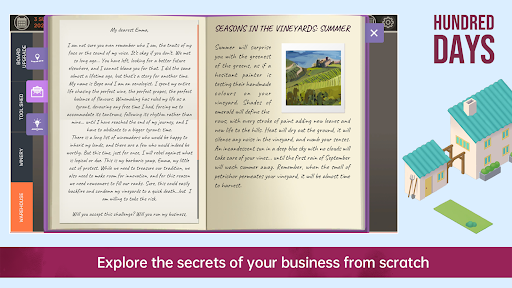 Hundred Days это медитативная и в то же время азартная симуляция винодельни, где день за днем вы следите за полями, принимаете решения о посеве, сборе и выдержке, затем продаете продукт и реинвестируете прибыль в развитие хозяйства. Основной цикл прост и затягивает: выращивание, производство, торговля и улучшения, каждый оборот приносит новые вызовы и прибыль. Есть скрытая нить сюжета о старой тайне виноградника и случайные события которые меняют планы, так что рутина не успевает надоесть и заставляет думать на ход впередов.