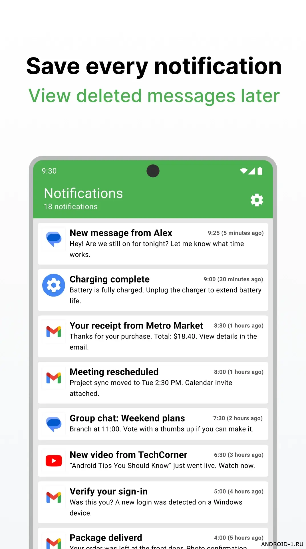 История уведомлений — умный менеджер уведомлений, который возвращает контроль над телефоном и делает повседневные дела проще. Приложение сохраняет все прошлые сообщения даже те, что исчезли из шторки, автоматически сортирует их по приложениям и категориям и показывает только самое важное. Всякая лишняя информация укладывается в архив, где её легко найти; за пару кликов можно пролистать мессенджеры, банковские оповещения и почту и быстро отыскать нужное сообщение, не теряя время на бесконечный скролл и догадки, что именно пропущено.