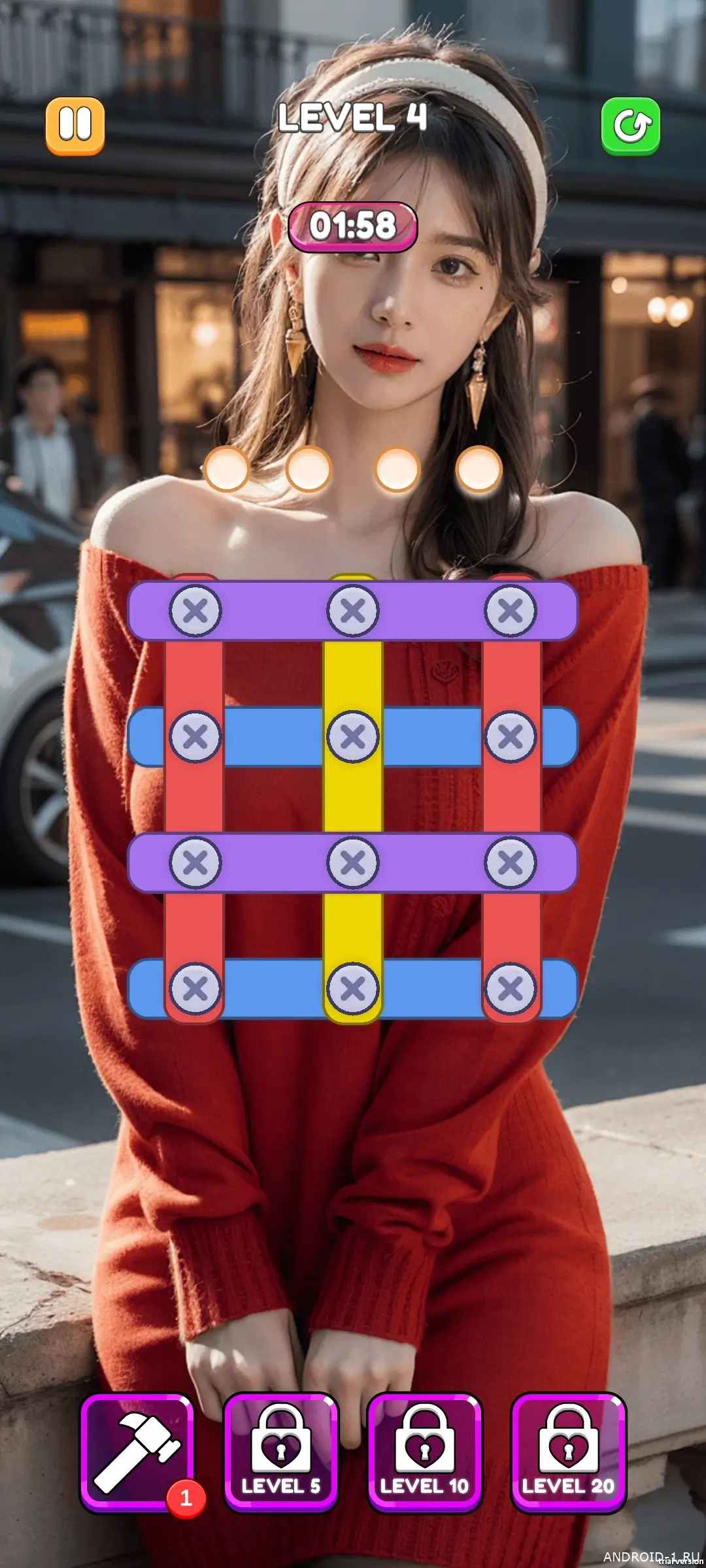 Screw Master: Lovely Sort — это увлекательная головоломка про аккуратные решения и неожиданные падения. Вы выкручиваете гвозди, двигаете доски и наблюдаете, как рушатся конструкции, а каждая сцена требует выбора правильной очередности действий. Игровой цикл прост и глубок: планируете ход, проводите эксперимент и анализируете результат, чтобы исправить ошибку на следующем уровне. В процессе появляется азарт и лёгкая интрига, потому что одна неверная деталь может изменить всю картину, а поиски оптимальной стратегии приносят настоящее удовольствие.