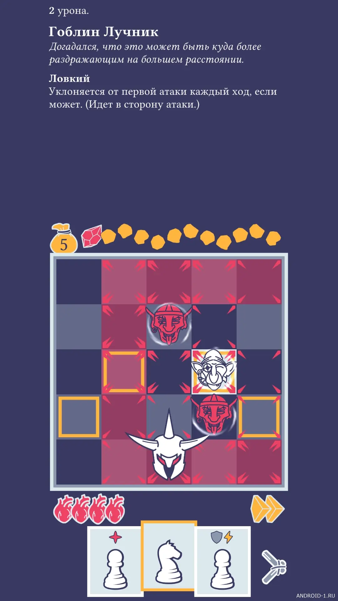 Pawnbarian это необычная головоломка-рогалик где вы перемещаете героя как шахматную фигуру по миниатюрной доске подземелья и решаете тактические задачи на каждом ходе. Главный цикл прост и увлекателен вы вытягиваете карты передвигаетесь бьёте врагов и улучшаете набор приёмов чтобы идти дальше. Каждый ход заставляет думать на несколько шагов вперёд и иногда менять план на ходу, что создаёт тонкую игру риска и расчёта и держит интерес до последнего хода.