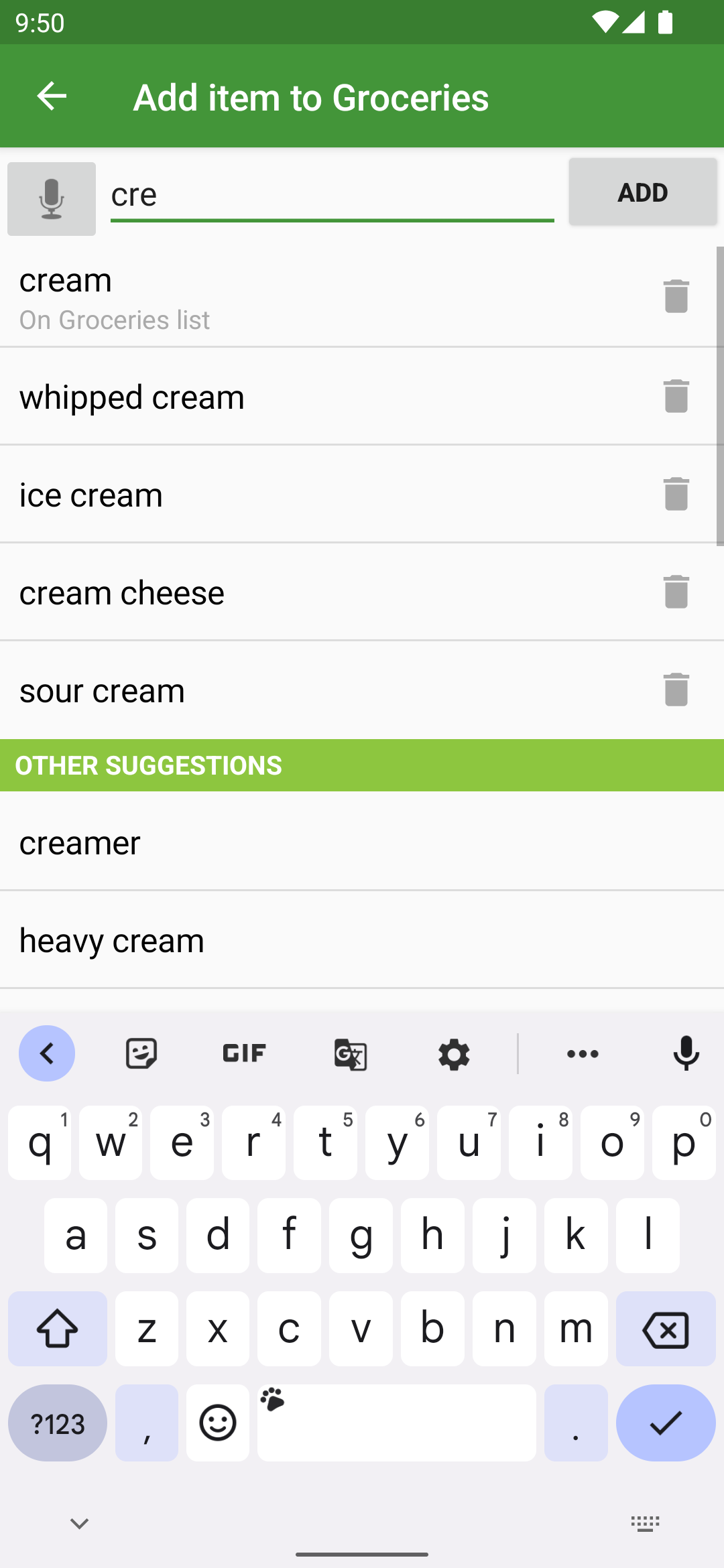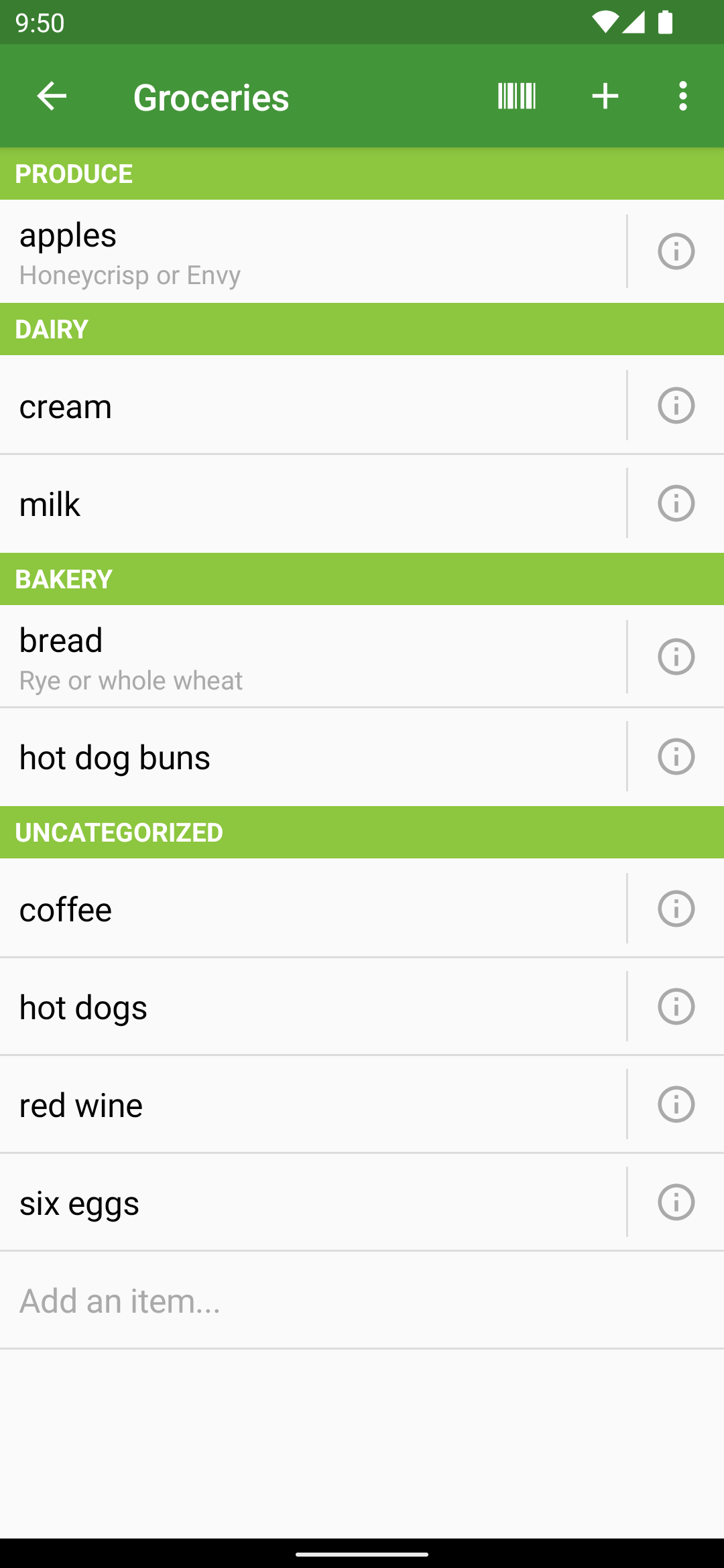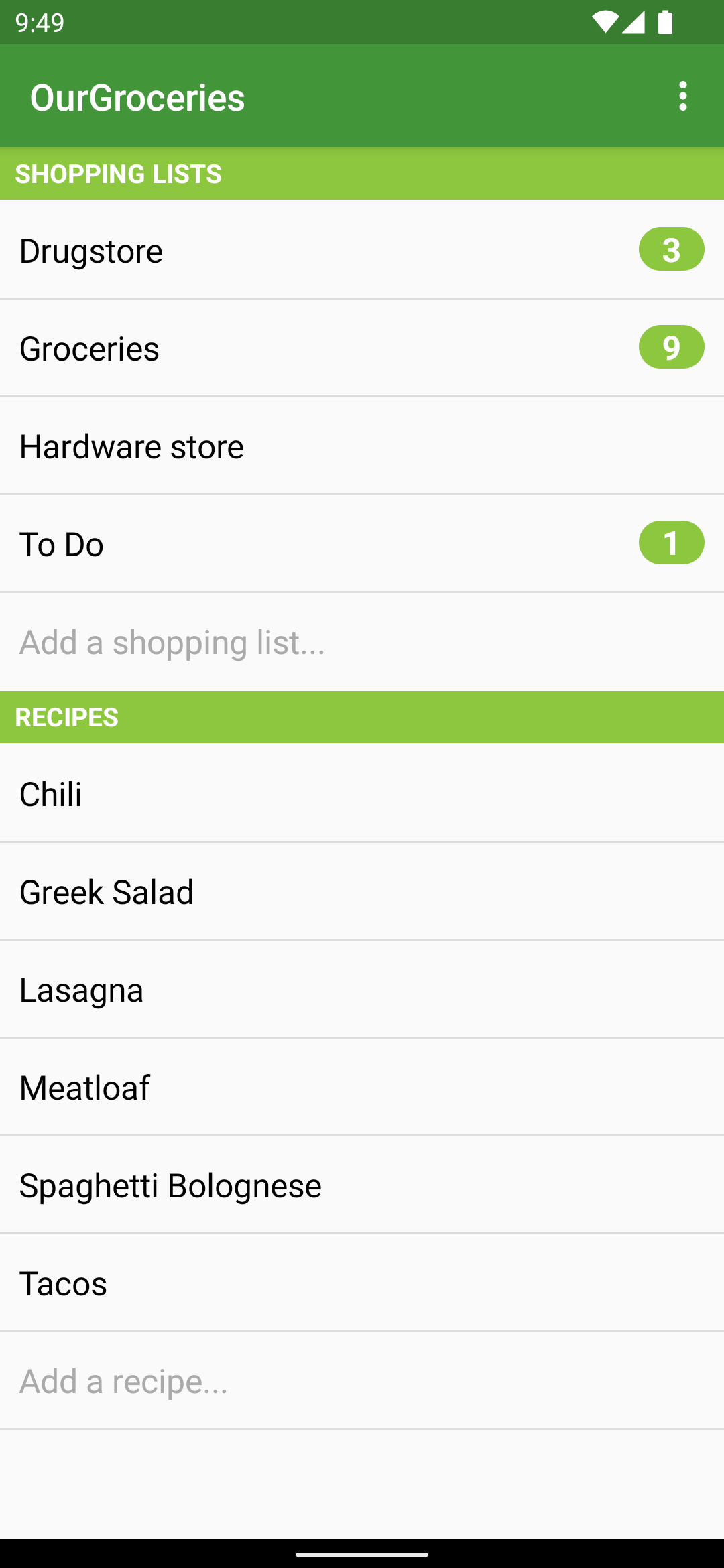 Our Groceries Shopping List