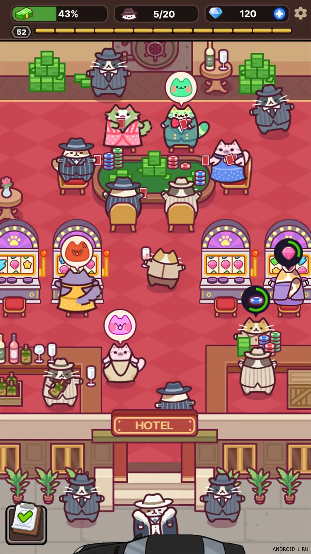 Cat Mafia: Idle Tycoon Games это простая и тёплая idle-игра о кошачьей мафии где вы начинаете с одного укрытия и медленно растёте. Собирайте команду с разными характерами, распределяйте роли и отправляйте котиков на задания, чтобы зарабатывать ресурсы и влияние. Каждый раунд приносит новые решения, иногда нужно рискнуть ради большого куша, иногда скромный ход окупается лучше, чем прямой конфликт, и это создаёт постоянный интерес к игре.