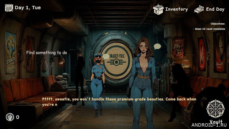 Fallout: Pip-Booty это дерзкая постапокалиптическая игра где вы попадаете в экспериментальный убежище с собственными правилами и абсурдными запретами. Вы ищете ресурсы, налаживаете связи и планируете вылазки по коридорам под наблюдением стражи; основной игровой цикл прост и затягивает — разведка, рискованная кража, возврат с добычей. В процессе вы учитесь обходить запреты, находите неожиданные лазейки и сталкиваетесь с тайной, которая может перевернуть представление о самом убежище и мотивах его создателей.
