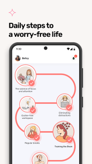 Содержание собрано специалистами и сочетает элементы mindfulness и CBT, чтобы менять негативные паттерны через практику и рефлексию. Ты настраиваешь упражнения под себя, собираешь инсайты о стрессовых ситуациях и выстраиваешь привычки для концентрации и лучшего сна. Прогресс виден наглядно, уровень тревоги снижается, уверенность растёт и мотивация возвращаться усиливается. Финал простой и чёткий: инструмент работает на твой день и на твою жизнь.