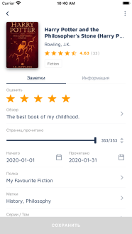 Система опирается на умный импорт и на удобный поиск, которые экономят время и сохраняют порядок. В профиле растёт статистика, появляются персональные подборки и понятная шкала прогресса, а экспорт в CSV или обмен полками делают коллекцию мобильной. Отмечая даты и добавляя теги вы видите реальный прогресс и легче возвращаетесь к забытой книге. Интерфейс не отвлекает, всё работает плавно, платформа мотивирует читать больше и управлять коллекцией уверенно.
