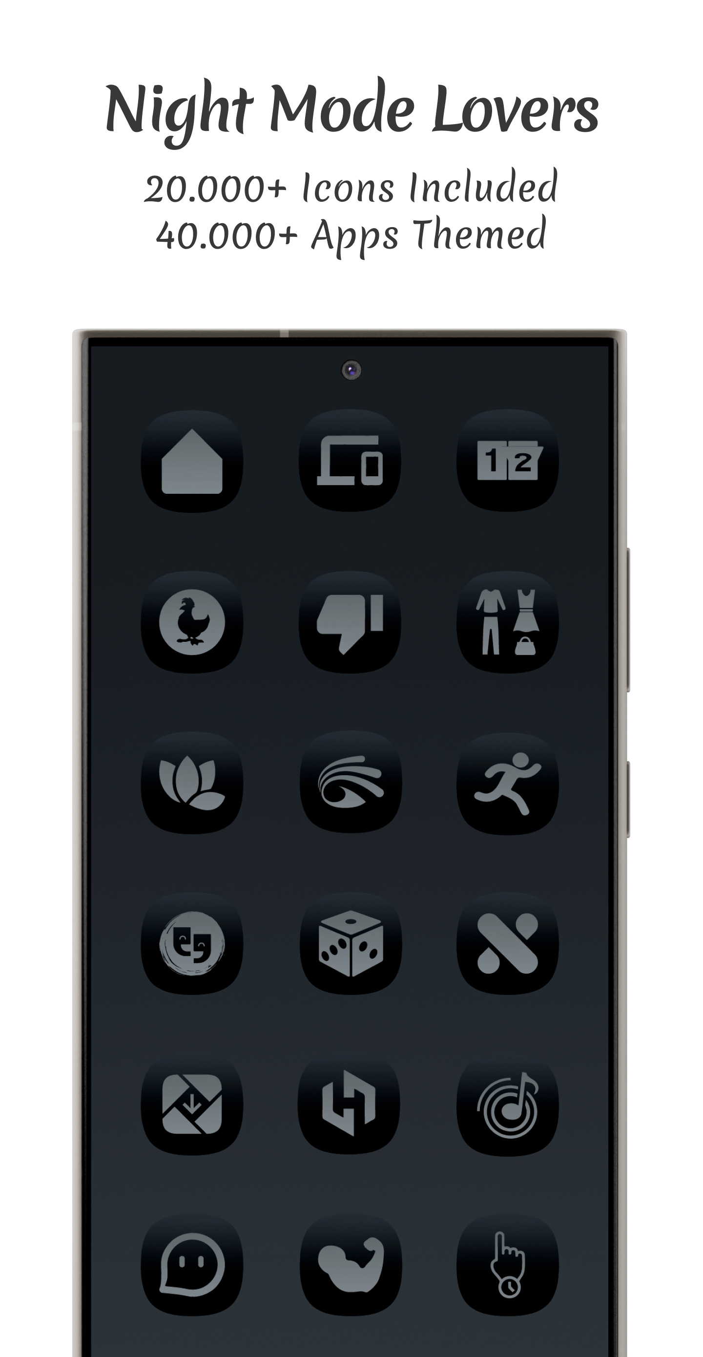 Midnight Dark Icon Pack — пачка иконок для Android в форме тёмного квадранта с мягким круглым бликом, создающая ощущение глубины на экране. Ты применяешь тему в лаунчере и мгновенно видишь, как иконки обретают характер благодаря нюансам градиента и аккуратно поставленным теням. Основной цикл прост и понятен: выбираешь набор, подбираешь сочетания с обоями, нажимаешь применить и оцениваешь результат. При этом остаётся небольшой элемент интриги, потому что разные световые акценты меняют восприятие приложений и заставляют возвращаться к каталогу снова и снова.