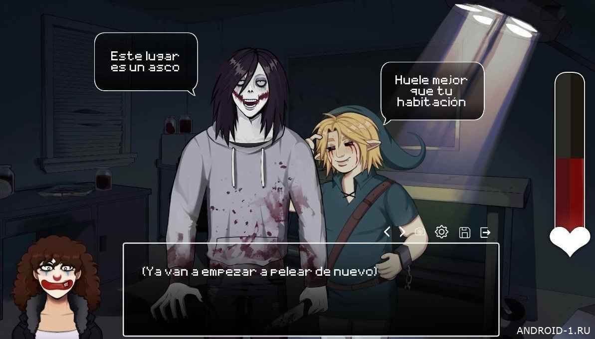 CREEPYDATES представляет собой фанатский dating simulator в мире creepypasta где создаёшь своего героя, блуждаешь по CreepyHouse и встречаешь самых известных икон ужаса: Джеффа Убийцу Безглазого Джека Бена Утопленника Тикки Тоби Маски и Худи Стройного мужчины. Игровой цикл прост и захватывающ: исследуешь комнату находишь предмет заводишь разговор и выбираешь ответ который меняет динамику отношений. Важные мелочи подсказывают ход сюжета тени на стенах и шёпот из-под пола добавляют напряжение и интригу а случайная встреча в коридоре может перевернуть всю линию персонажа.
