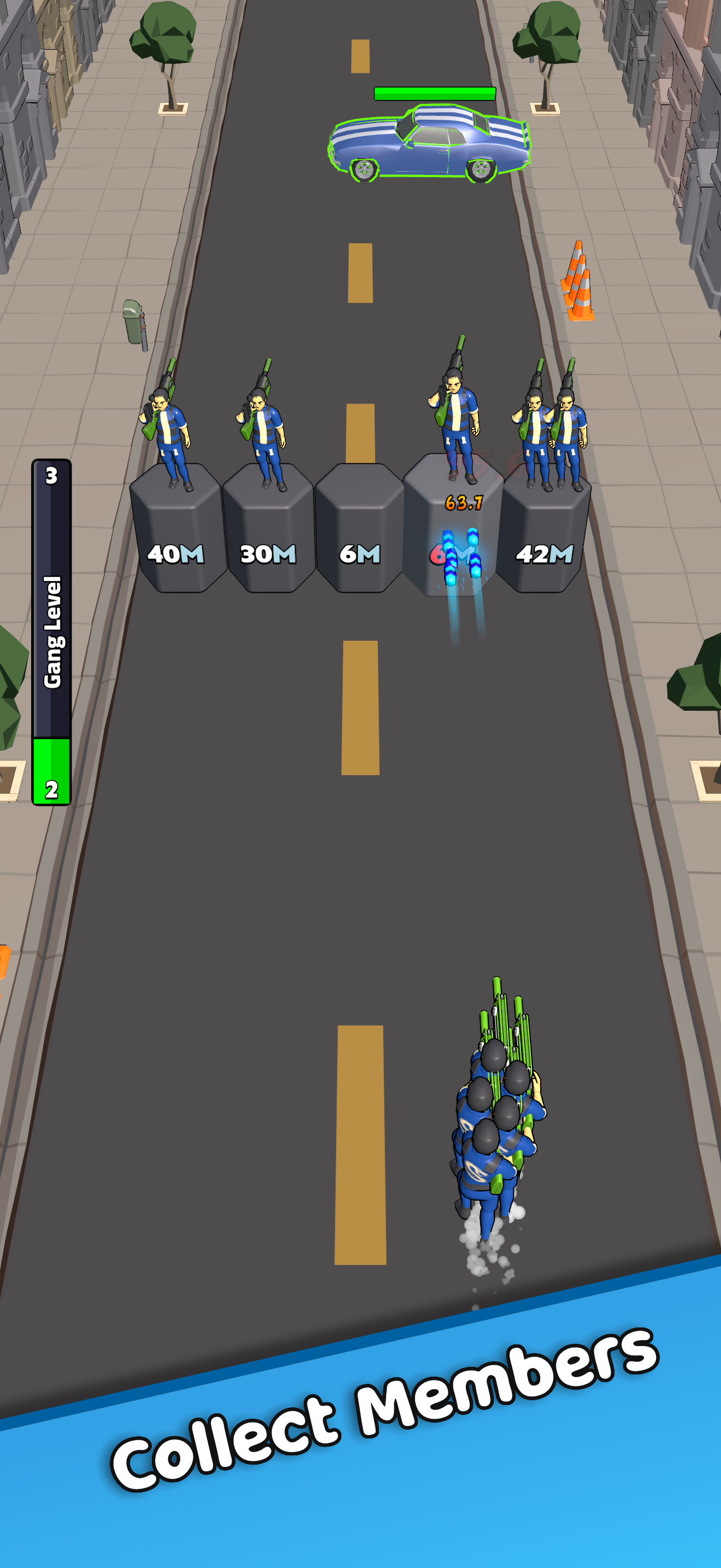 Gang Up — уличный раннер-бrawler где ты лидер банды бежишь по городу и собираешь толпу прямо на ходу, ломая ящики за ресурсы, стреляя и прорываясь сквозь препятствия. Игровой цикл прост и захватывающ: старт по короткой карте, набор подкреплений, выбор направления и апгрейд оружия между забегами. Сессии рассчитаны на пять минут но оставляют чувство роста и напряжения, когда одна удачная дуэль меняет расклад и открывает новые пути развития, так что каждый забег обещает сюрприз и накал эмоций.