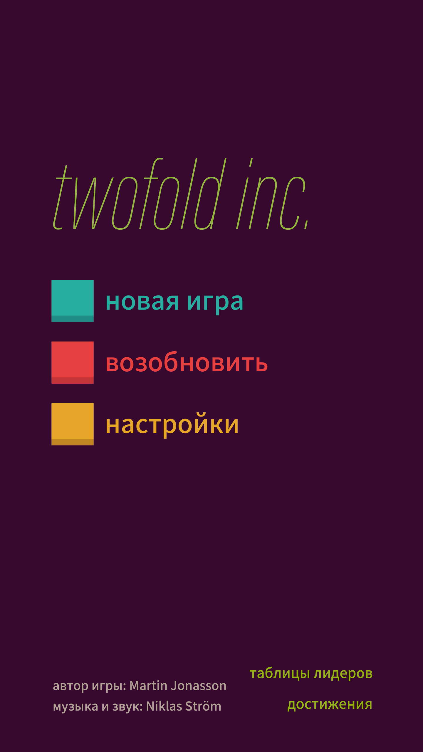 twofold inc. минималистичная головоломка с поворотом поля и простыми правилами. Ты смотришь яркую сетку плиток и вращаешь доску чтобы совпадающие цвета соединились в длинную цепочку, свайпаешь и наблюдаешь как они исчезают с приятным звуком. В каждом уровне задача остаётся прежней очистить доску за минимум ходов, пробуя разные углы и предвидения ходов. В процессе ты учишься видеть связи мгновенно и получаешь удовлетворение от чистого экрана когда длинная цепь улетает целиком, это затягивает и хочется вернуться снова.