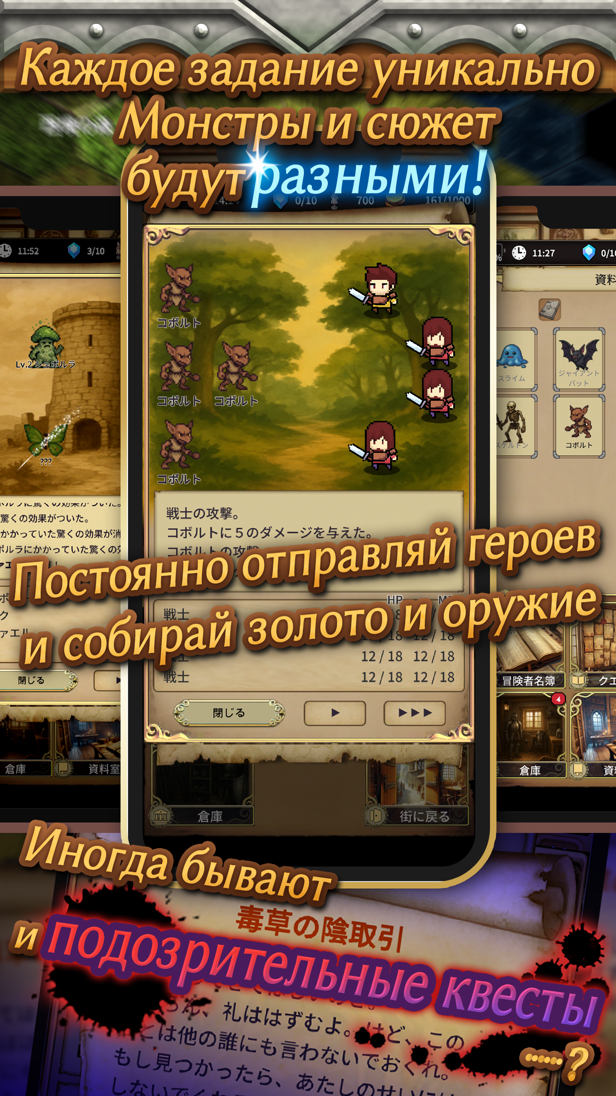 Idle RPG: Безмолвный архивариус это спокойный idle в фэнтези-деревне Виндарион где ты играешь за архивариуса без голоса который спасает путника и собирает команду искателей. Нанимаешь героев отправляешь их на задания собираешь золото и лутишь редкие материалы для апгрейдов базы. За пару минут можно нанять лучника послать его в подземелье и увидеть возврат с трофеями которые меняют ход игры, а каждый рейд таит небольшую загадку для следующего шага.