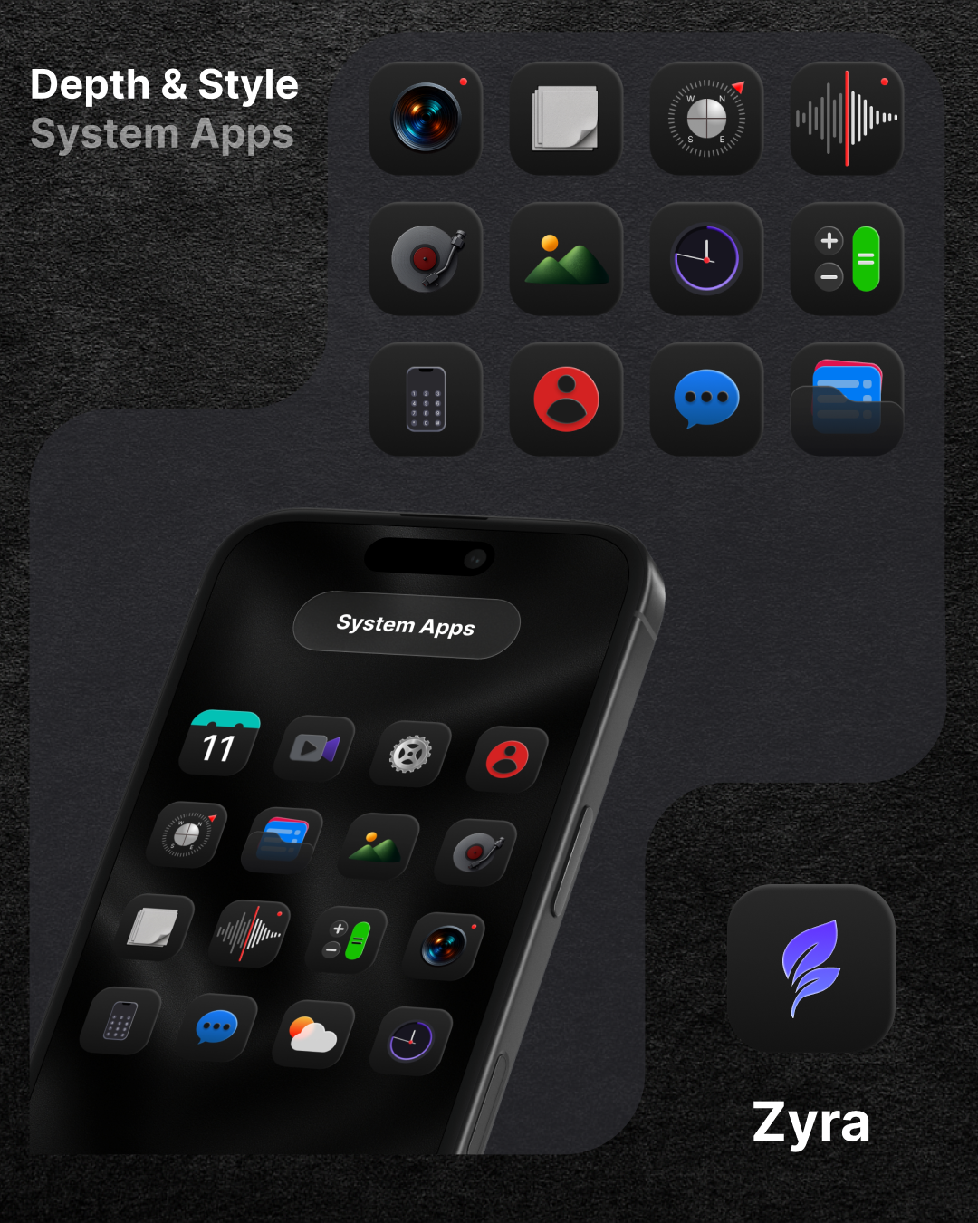 Zyra — тёмный икон-пак с аккуратно продуманной глубиной и световыми акцентами, который меняет внешний вид устройства разом в одно действие. Ты выбираешь тему устанавливаешь набор иконок и виджетов наблюдая как рабочий стол преобразуется, это простой цикл кастомизации который складывается из выбора, установки и оценки результата. В процессе можно подбирать сочетания виджетов и обоев искать неожиданные комбинации и находить новый стиль для повседневного пользования, а лёгкая интрига в том что каждая тема раскрывается по-новому при долгом использовании и может внезапно удивить тебя ясной эстетикой и удобством интерфейса.