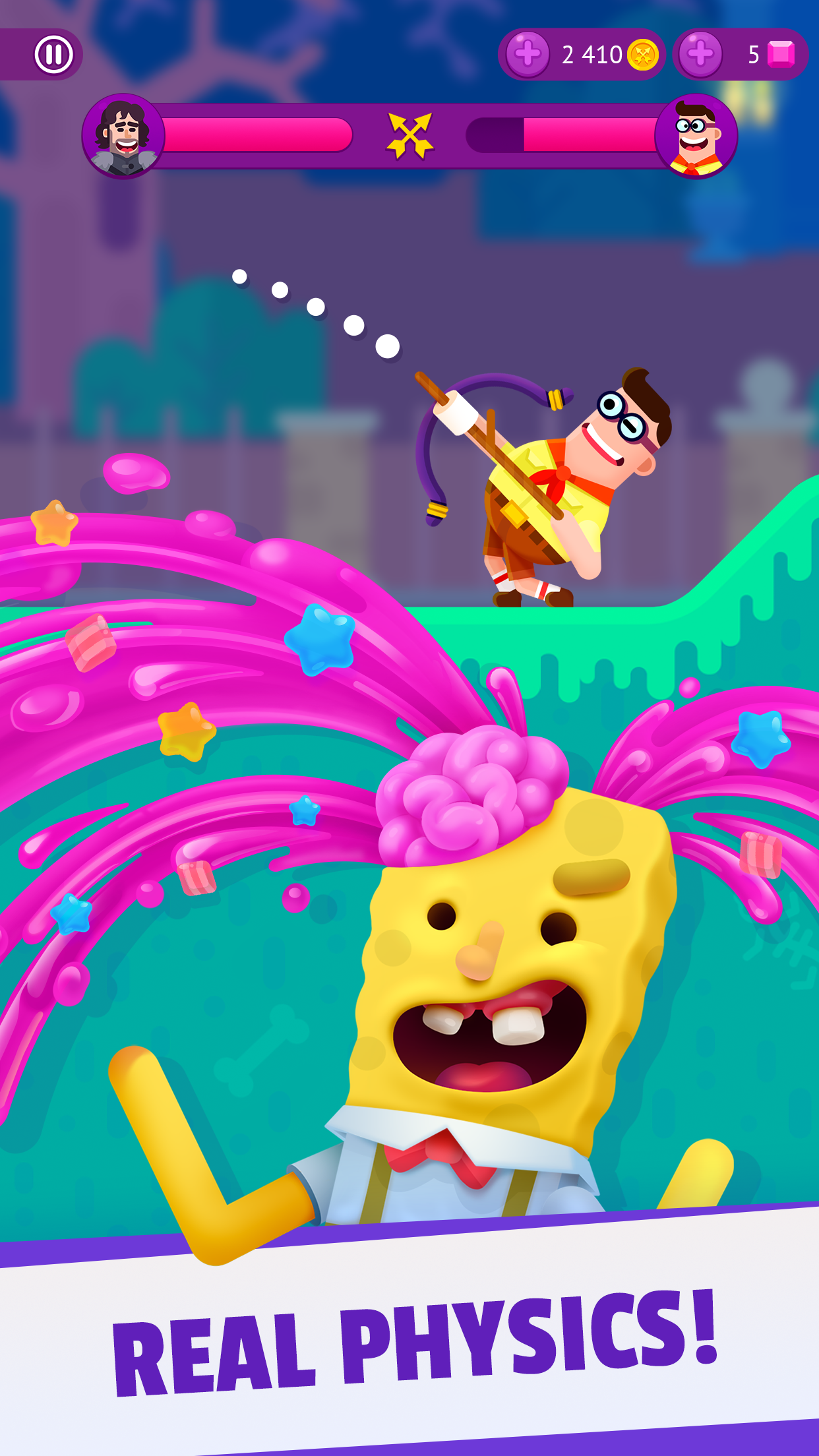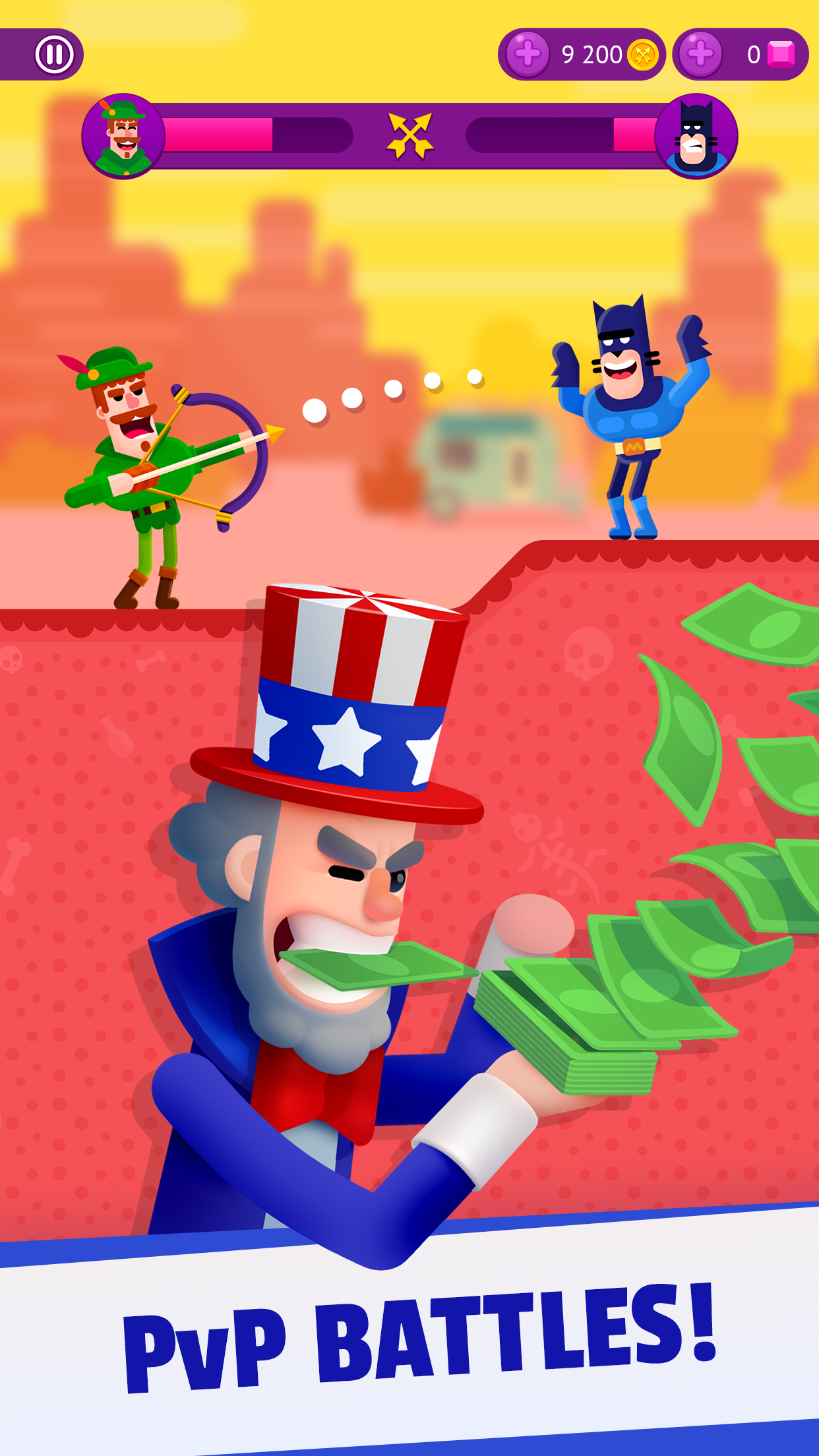 Игра Ultimate Bowmasters для Android приглашает в мир ловких выстрелов и неожиданных комбинаций, где вы учитесь читать ветер и рассчитывать силу броска. В основе проста механика: выбрать лук, прицелиться и поразить цель, но вокруг этого крутится куча мелких задач и коротких испытаний которые заставляют думать и подстраиваться. Сюжет ведёт через смену локаций и персонажей, время от времени подбрасывая тайну о прошлом героини и сундуке с древним секретом.