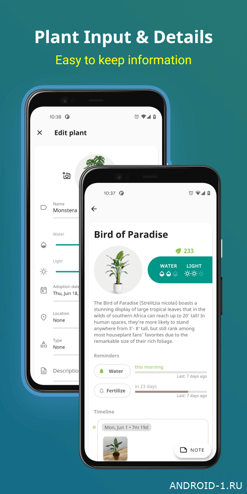Plantnote — трекер ухода за растениями который делает заботу понятной и приятной. Ты добавляешь фото, указываешь график полива и освещения, отмечаешь удобрения и ведёшь журнал здоровья. Каждый простой ввод превращается в действие которое уменьшает рутину и увеличивает результат. За пару минут можно зафиксировать новый полив сфотографировать состояние листа и получить напоминание о пересадке. Это вовлекает: видимый прогресс вызывает желание возвращаться и наблюдать развитие сада под рукой.